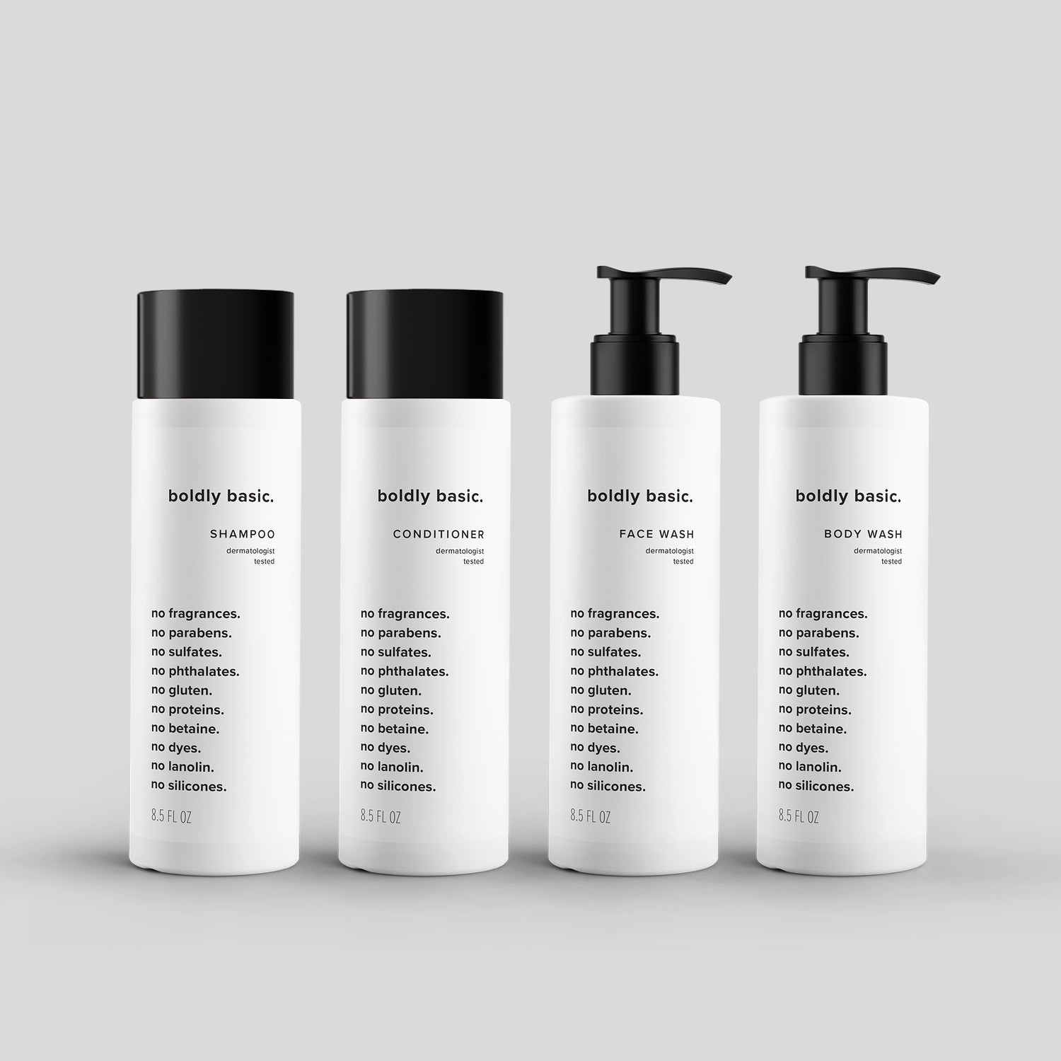 Boldly Basic Fragrance Free Shampoo, Conditioner, Face Wash, Body Wash & Lotion